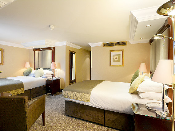 Las habitaciones familiares en el Shaftesbury Premier London Paddington Hotel tienen una cama doble y un sofá cama, o dos camas individuales y un sofá cama. Hay depósito de equipajes y servicios de lavandería y limpieza en seco.