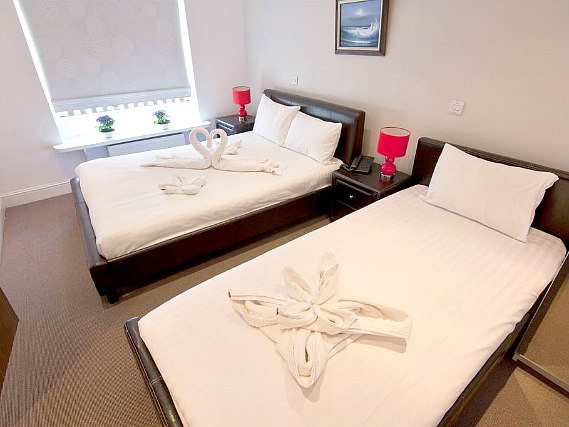 Súbase en el ascensor del Hotel 43 para llegar a su habitación individual, twin o doble, con una decoración moderna y con todas las comodidades que se puede imaginar. Además de una ducha privada, tendrá aire acondicionado, un lector de CD, teléfono de marcación directa, acceso a internet inalámbrico y una nevera a su disposición. Como también hay una TV en color, un lector de DVD y menaje para preparar té y café, verá lo fácil que le resulta relajarse después de días agitados de excursión.