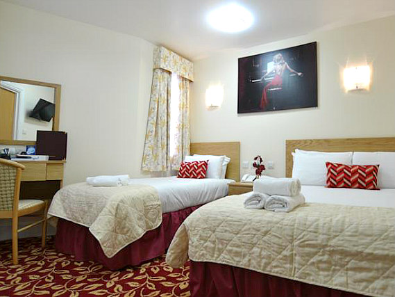 Best Western Greater London Hotel has a beautiful air-conditioned reception with crystal chandeliers. There’s a breakfast room and coffee shop serving sandwiches and drinks throughout the day, as well as meeting rooms and a luggage store. FREE WiFi is available in the modern guestrooms, which are packed with amenities. Relax in front of your flat-screen TV with a hot drink courtesy of the tea and coffee making facilities, take a shower, use the hairdryer and even order room service; what bliss!